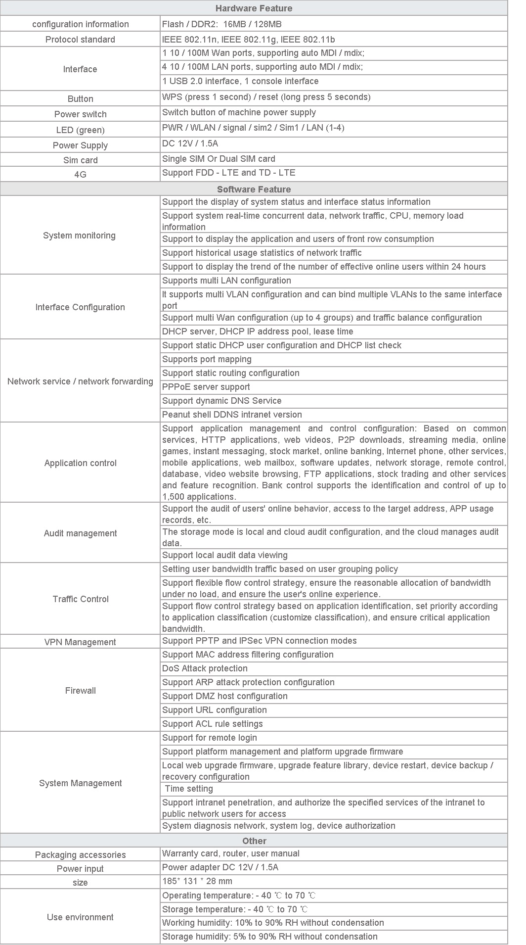 l Provide 4 * 10 / 100M adaptive Ethernet (LAN) interfaces and support automatic MDI / mdix