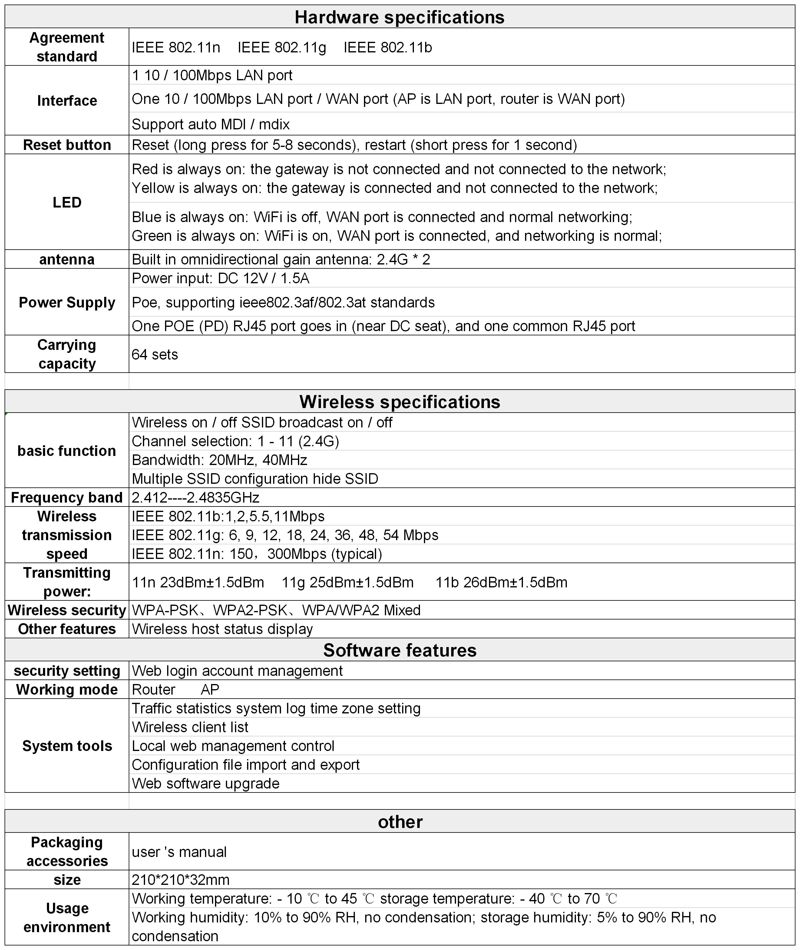 The ceiling Poe wireless access point provides high-speed wireless transmission rate for your home or office network. It conforms to the latest 802.11n standard, with a transmission rate of about 300mbps, which can meet the transmission requirements of all data, voice and video streams.