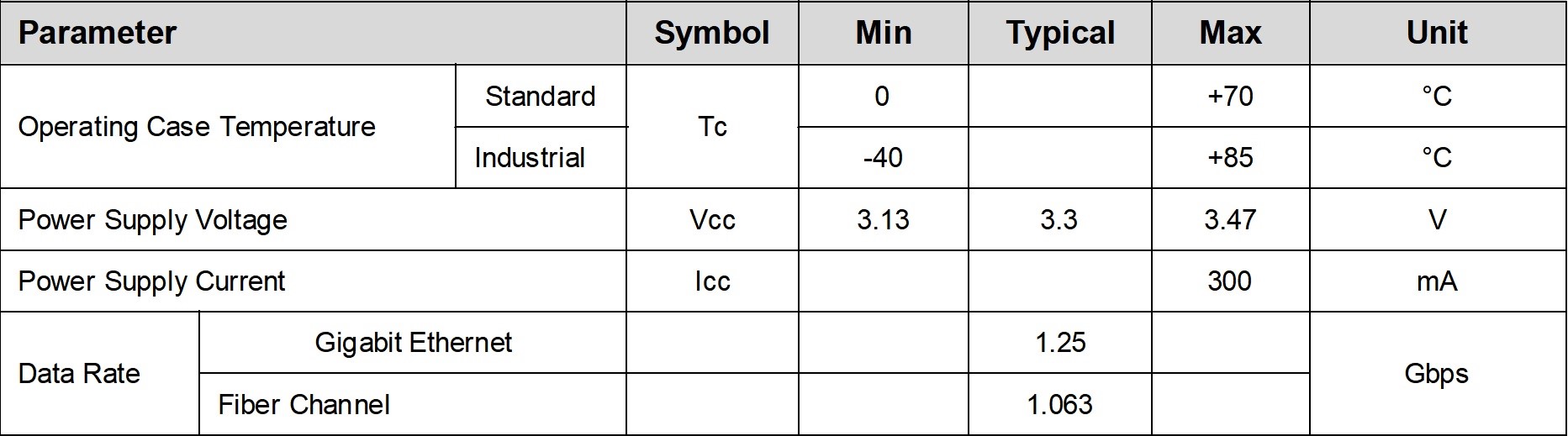 ●Dual data-rate of 1.25Gbps/1.063Gbps operation