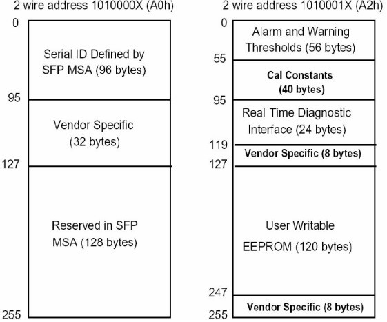 The transceivers provide serial ID memory contents and diagnostic information about the present operating conditions by the 2-wire serial interface (SCL, SDA).